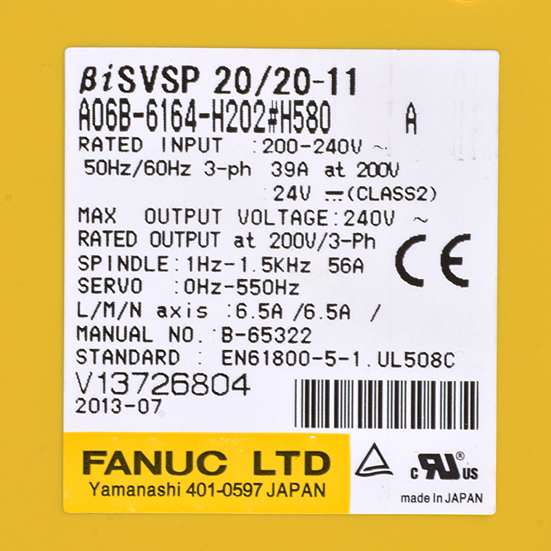 Tiomáineann Fanuc A06B - 6164 - H202#H580 FANUC BISVSO 20/20 - 11
